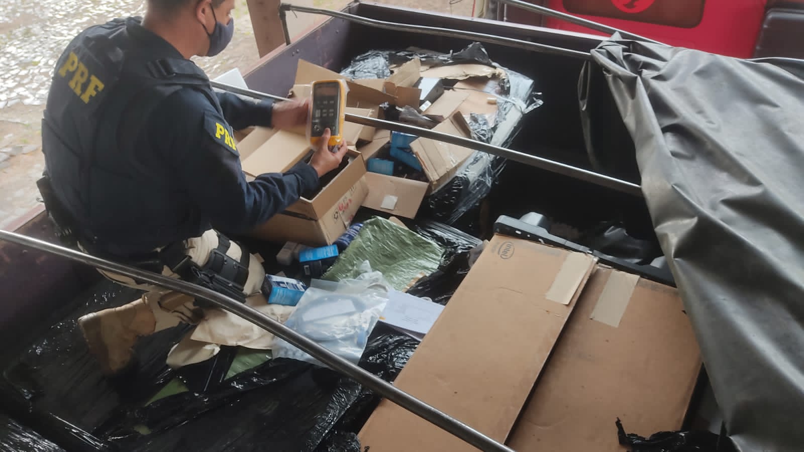 Os dois motoristas disseram aos policiais que não tinham notas fiscais das mercadorias. Foram apreendidos agrotóxicos, medicamentos, bebidas, vestuário e eletrônicos em geral.