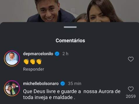 Horas depois da publicação do filho “02” do ex-presidente, Michelle escreveu “que Deus livre e guarde Aurora de toda inveja e maldade”. Mais cedo, o próprio Carlos quis dar visibilidade à crítica feita e republicou o comentário feito na rede social X (ex-Twitter).