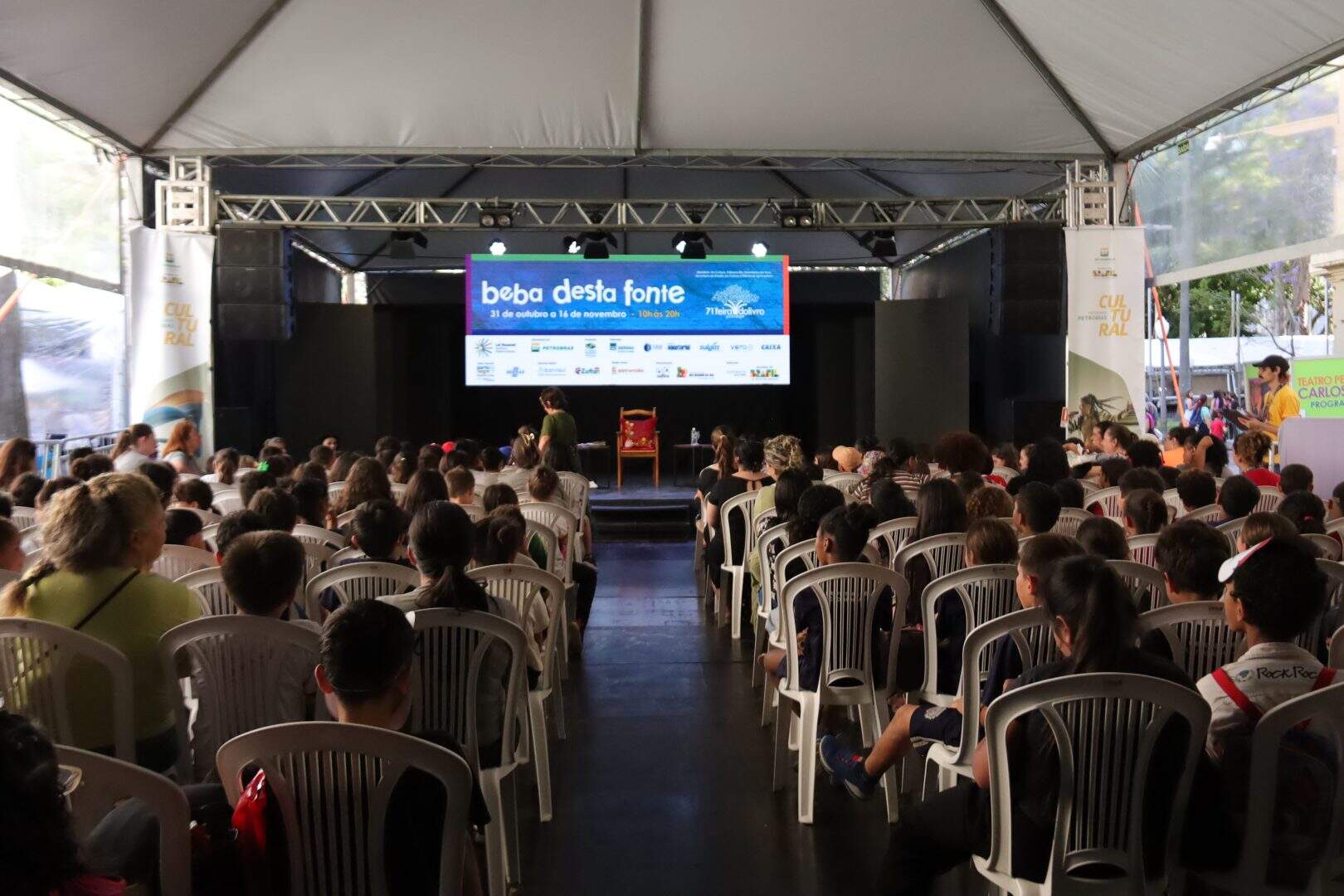 Durante a tarde, o Teatro Petrobras Carlos Urbim recebeu duas atividades voltadas ao público escolar. O escritor e ilustrador Ricardo Azevedo conversou com alunos do Ensino Fundamental sobre leitura de ficção e criação de personagens no encontro “Autor no Palco”. Na sequência, a escritora Marta Lagarta conduziu outra edição da atividade, apresentando histórias que mesclam humor, imaginação e elementos do universo infantil.