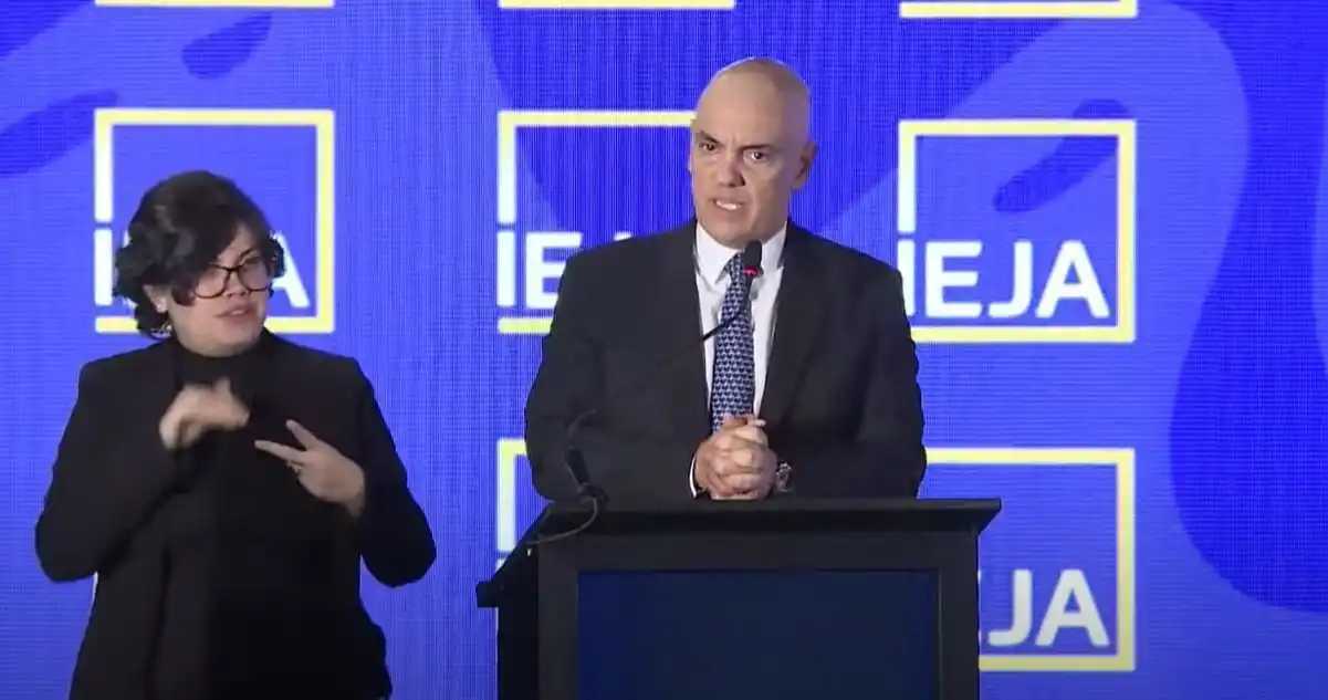 Anteriormente ao seu discurso, o ministro Flávio Dino, presente no evento também, prestou solidariedade a Moraes, que se tornou alvo de críticas por parlamentares da oposição, que articulam um pedido de impeachment.