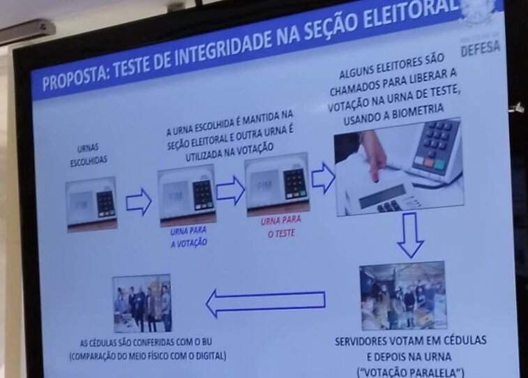 Atualmente, os testes de integridade são feitos antes do dia da eleição, com urnas selecionadas dentro das 577 mil urnas disponíveis para a eleição geral. Elas são separadas e levadas aos Tribunais Regionais Eleitorais para simular votações com servidores da Justiça Eleitoral. Os funcionários votam em cédulas (votação paralela) de papel e depois numa urna eletrônica, com tudo gravado por câmeras, e os resultados são checados, entre cédula e o boletim de urna. Para os militares, esse formato é insuficiente.