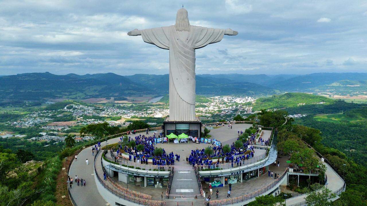 Integrantes dos Cursilhos de Cristandade de diversas paróquias da Diocese de Santa Cruz do Sul, no Vale do Rio Pardo, se reuniram no pedestal da estátua de 43,5 metros de altura para a tradicional ultreia, momento de saudação, encorajamento e renovação do compromisso cristão.