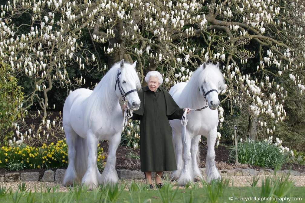 A foto foi tirada em março na propriedade do Castelo de Windsor, e foi divulgada pelo Royal Windsor Horse Show, feira que conta com a presença da rainha Elizabeth todos os anos desde sua criação, em 1943.