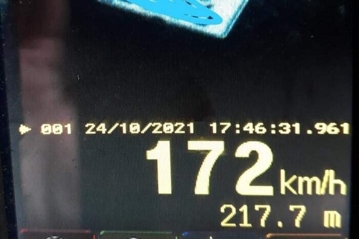 Uma motocicleta foi flagrada trafegando a 172 km/h na RS-389, a Estrada do Mar neste domingo (24). O flagrante foi no km 75 da rodovia, em Arroio do Sal, no Litoral Norte gaúcho, por meio de radar móvel. O limite de velocidade no ponto é de 80 km/h.