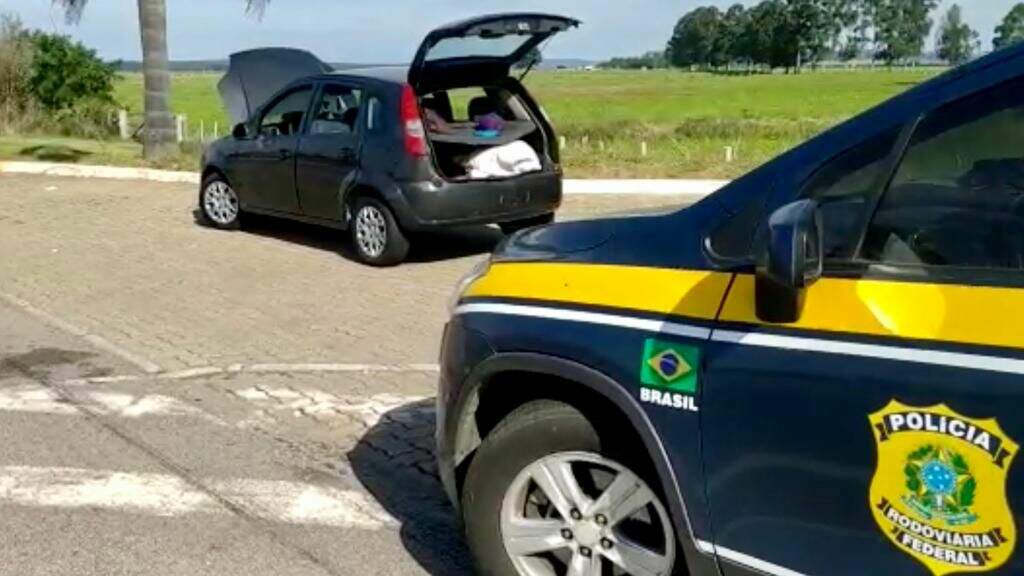 Após receberem informações sobre um Fiesta que poderia estar transitando com as placas falsificadas, os policiais passaram a procurar o veículo. O carro foi visualizado na rodovia federal transitando no sentido Santa Catarina e foi abordado.