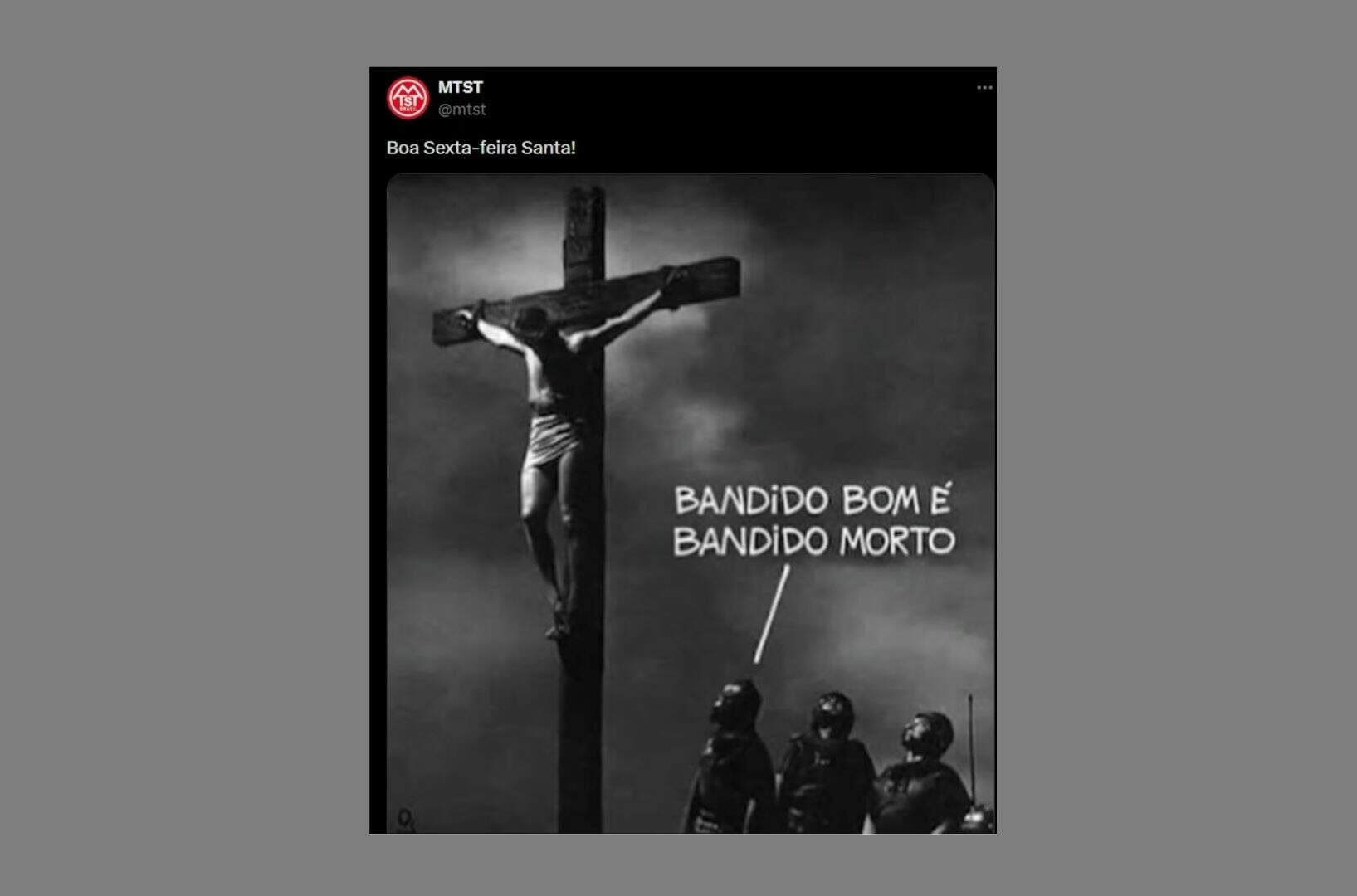 A direção do Movimento dos Trabalhadores Sem Teto (MTST) decidiu apagar postagem publicada durante a Semana Santa e que fazia referência a imagem de Jesus Crito crucificado enquanto um dos soldados romanos diz: “bandido bom é bandido morto”.