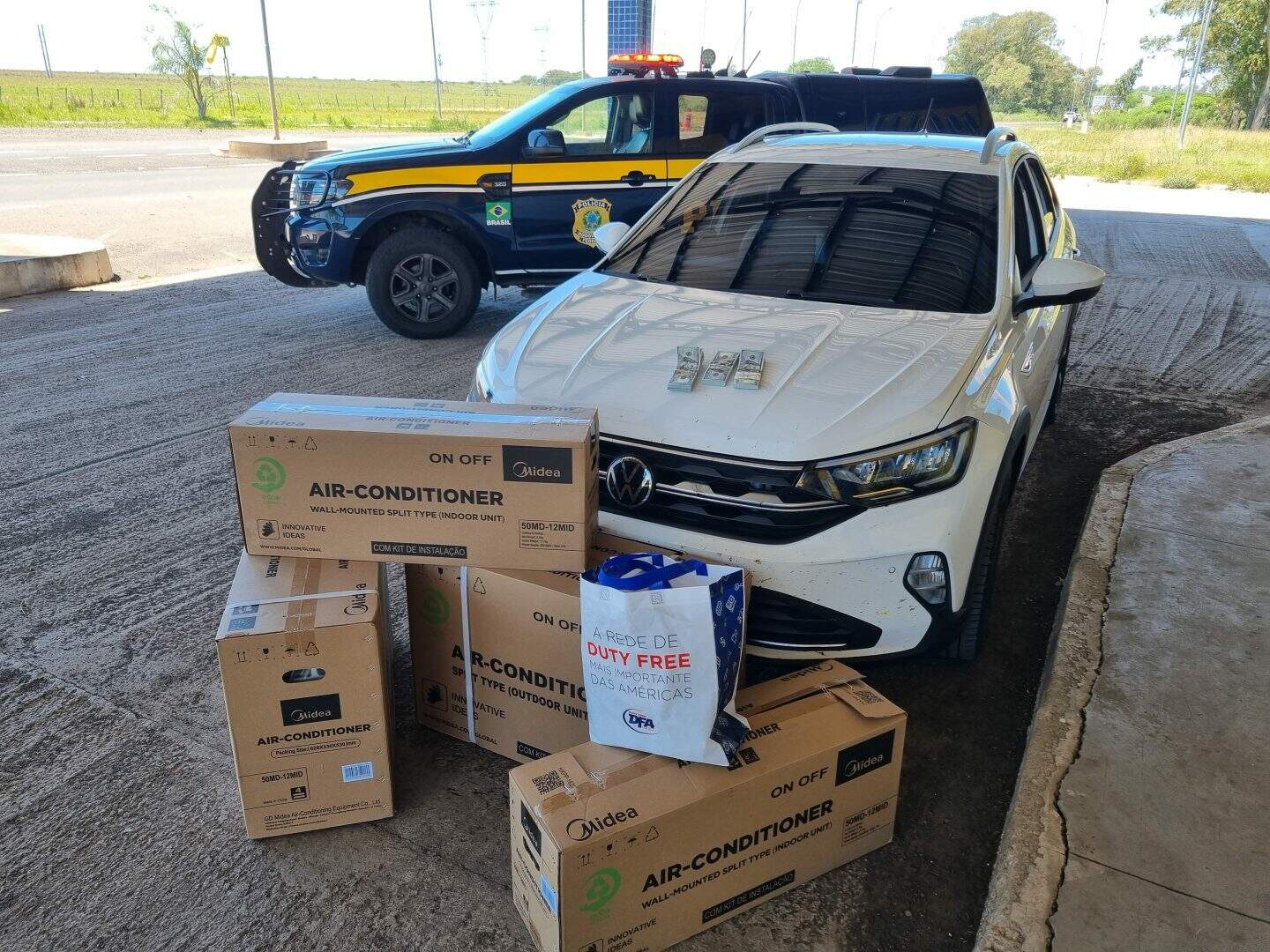 Dentro do veículo havia dois aparelhos de ar-condicionado que o casal afirmou ter comprado em Artigas para vender em São Borja, mas não conseguiu comprovar a procedência lícita do dinheiro. Além disso, os policiais identificaram que o homem, de 32 anos, já havia sido preso pelo crime de descaminho.