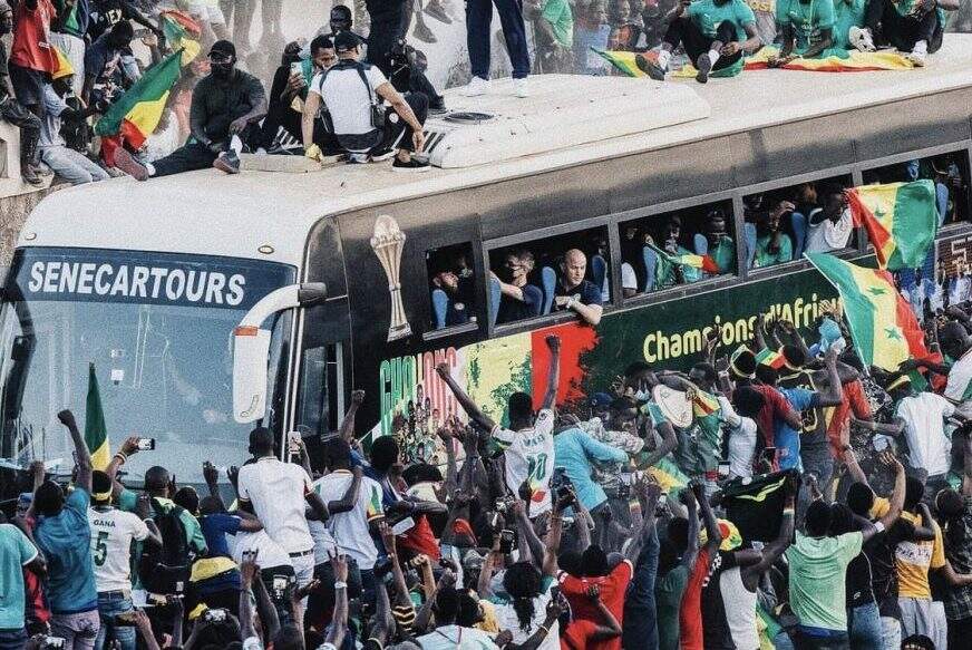 Uma multidão de pessoas pulavam e dançavam quando a seleção de Senegal chegou em casa, nesta segunda-feira (7). A euforia ocorreu pelo título inédito na Copa Africana das Nações. Sadio Mané converteu o pênalti decisivo para selar a vitória do Senegal na disputa por pênaltis contra o Egito, que terminou em 4 a 2, após um empate de 0 a 0 na decisão, em Yaoundé, em Camarões, na noite anterior.