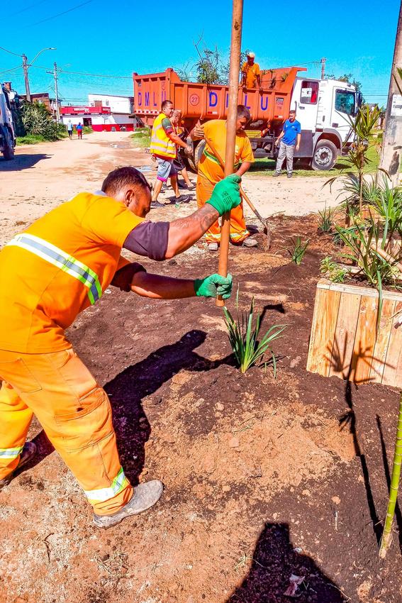 Também foi feito um plantio urbano sustentável no local, que contou com 18 floreiras, 80 mudas, 20 palmeiras e seis metros cúbicos de composto orgânico.