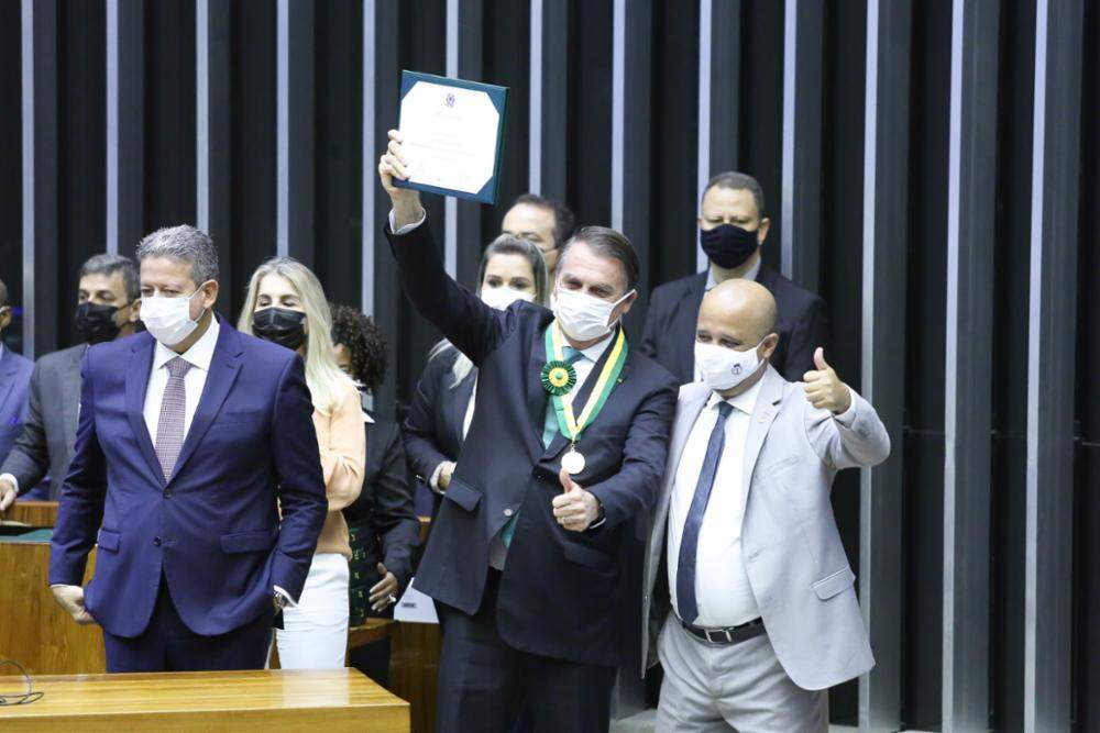 Quando Bolsonaro foi chamado para receber a medalha, parlamentares da oposição começaram a gritar “genocida”. Em resposta, deputados da base aliada chamaram o presidente de “mito”.