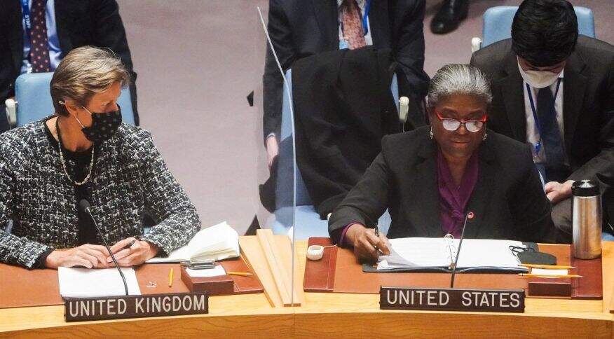 Thomas-Greenfield disse que não há necessidade de adivinhar as motivações de Putin, ressaltando que ele “fez uma série de falsas alegações ultrajantes sobre a Ucrânia, visando criar um pretexto para a guerra, e imediatamente depois anunciou que as tropas russas estão entrando em Donbass”.