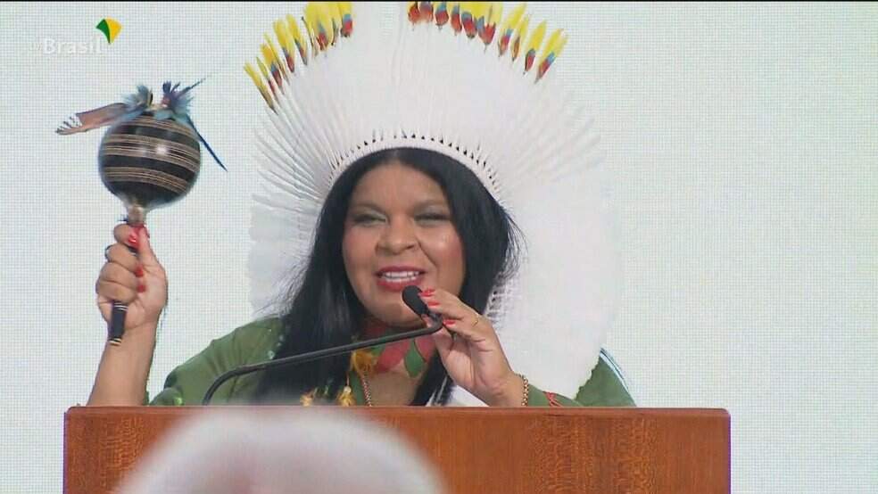 Em seu discurso, Sônia Guajajara afirmou que é importante que a população brasileira saiba que os indígenas “existem de diferentes formas” e que “não são o que muitos livros de histórico costumam retratar”. “Estamos nas cidades, nas aldeias, nas florestas, exercendo os mais diversos ofícios que vocês puderem imaginar. Vivemos no mesmo tempo e espaço que qualquer um de vocês, somos contemporâneos deste presente e vamos construir o Brasil do futuro, porque o futuro do planeta é ancestral”, disse a ministra.