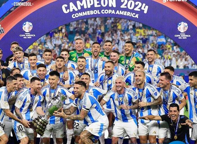 A Argentina venceu a Colômbia por 1 a 0 no Hard Rock Stadium, em Miami (EUA), e conquistou o 16º título da Copa América. O gol foi marcado por Lautaro Martínez aos 6 minutos do segundo tempo da prorrogação. A partida, que começou com uma hora e 20 minutos de atraso, terminou na madrugada desta segunda-feira (15).
