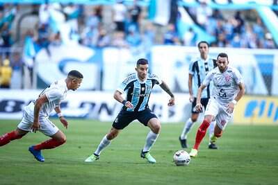 Já os visitantes tentaram arriscar de fora da área, com Ariel, que mandou meio em curva, mas Brenno defendeu bem, na reta final da partida. Também houve ainda uma cobrança de escanteio, colocada na primeira trave, mas a defesa gremista fez o corte.