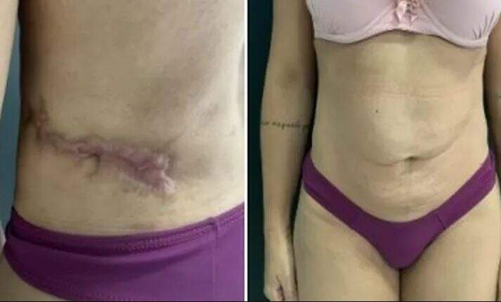 “Minha barriga ficou torta, não lipou direito. Fiquei arrasada com o que aconteceu comigo. Quando ela viu que não estava dando jeito nenhum, que minha barriga tava torta, ela falou que não iria me cobrar nada e ela faria no consultório a lipo da parte de cima da barriga”, diz.