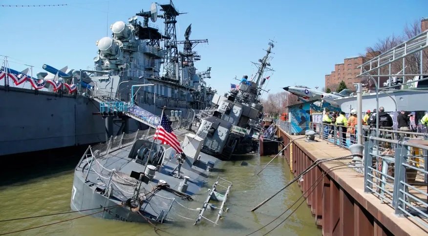 Um destróier da Segunda Guerra Mundial, que estava em exibição, naufragou parcialmente no Lago Erie, no Parque Naval e Militar de Buffalo e Erie, de acordo com a administração do local.