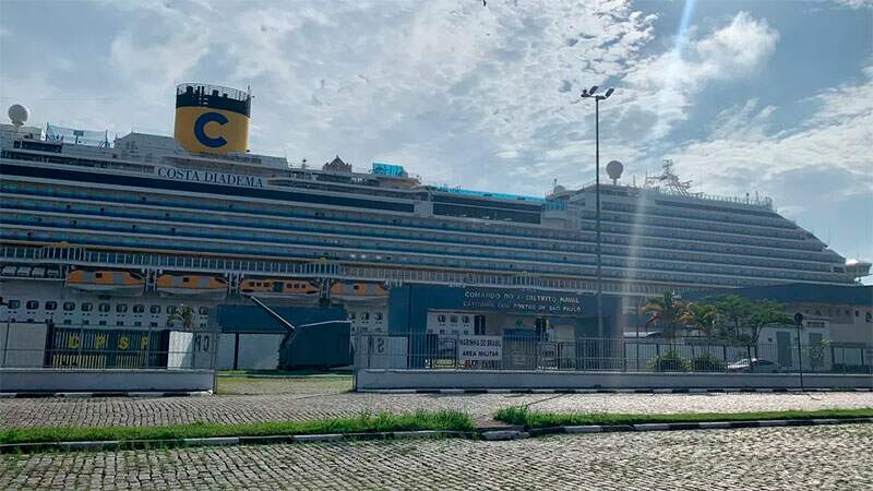 O navio de cruzeiro Costa Diadema chegou ao Porto de Santos, no litoral de São Paulo, na manhã de segunda-feira (3) para o desembarque dos passageiros e tripulantes após a suspensão das atividades pela Anvisa devido ao surto de Covid a bordo. A companhia marítima Costa Crociere anunciou o cancelamento das próximas duas saídas do cruzeiro.