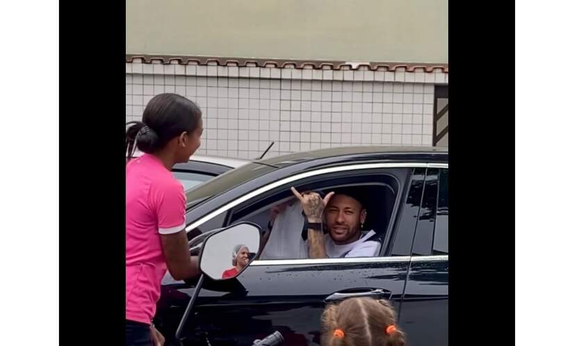 O atacante não desceu do veículo, mas conversou rapidamente com a responsável pelo estabelecimento, que aguardava na calçada para entregar os produtos. “Eu vou te atropelar”, disse Neymar, em tom de brincadeira, antes de agradecer e deixar o local.