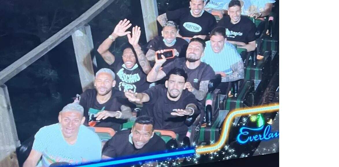 Em um dos vídeos postados por Neymar, é possível vê-lo na montanha-russa ao lado de Lucas Paquetá, que parece bastante apreensivo com o brinquedo, enquanto o jogador do PSG grita e sorri.