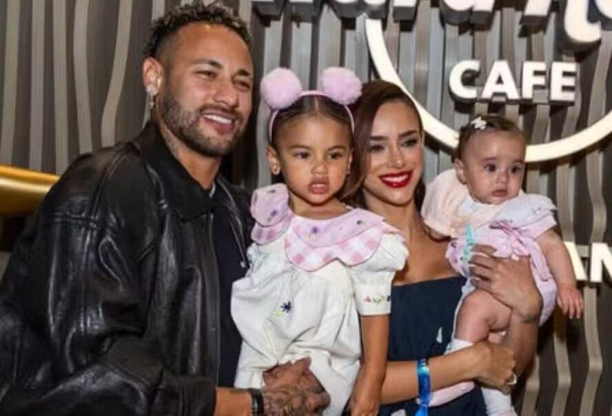 Neymar, de 33 anos de idade, postou cliques com a família nesta segunda-feira (1) durante a inauguração da franquia do Hard Rock Cafe na Praia Grande, no litoral de São Paulo, que aconteceu neste domingo (30). Ele estava acompanhado de sua esposa, Bruna Biancardi, de 31, e de suas filhas Mavie, de 2, e Mel Biancardi, com cerca de 5 meses.