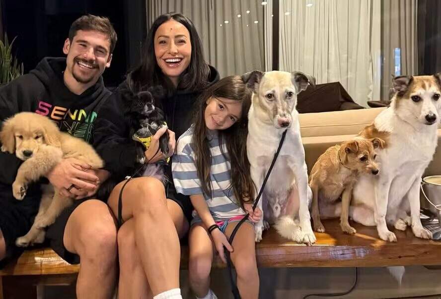 Nicolas Prattes, de 28 anos, é apaixonado por pets. Tanto que tem cinco cachorros no apartamento onde mora em São Paulo com a esposa, a apresentadora Sabrina Sato, de 45, e a enteada, Zoe, de 7. “Temos cinco cachorros em um apartamento. Já virou uma matilha. A gente só mora lá, a gente paga aluguel para eles”, conta o ator, aos risos. “Eu já tinha dois, a gente adotou mais dois juntos, e ela tinha uma, que era a Coquinho, uma chihuahua. Aí a gente adotou a Belinha, que era uma vira-lata, e agora o Maui, que é um golden retriever”, explica.
