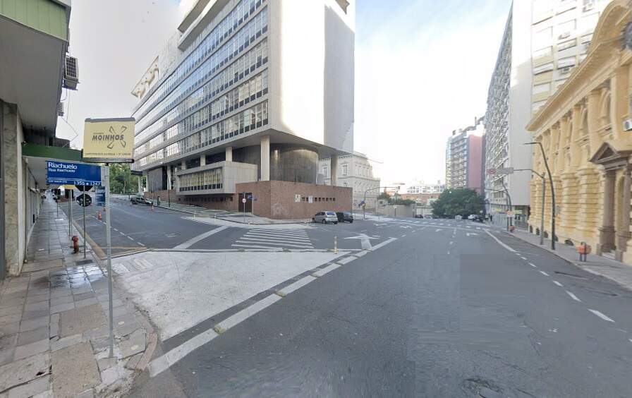 Quem trafegar pela via a partir da avenida Borges de Medeiros em direção à Usina do Gasômetro deve desviar à esquerda no Largo João Amorim de Albuquerque (que estará com sentido especialmente invertido, em direção à Catedral Metropolitana), dobrar à direita e novamente à direita (contornando o Palácio da Justiça, em frente à escadaria da Praça da Matriz, e passando pela lateral do teatro), para então retomar o curso da Riachuelo.