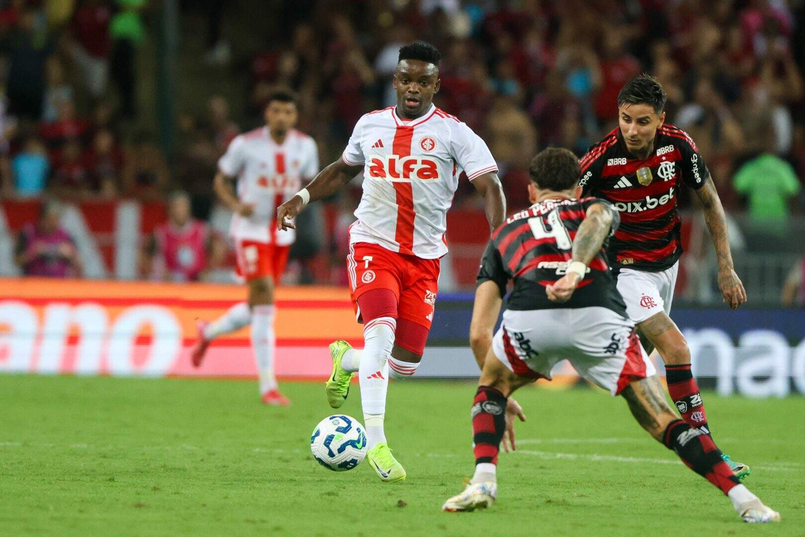 Estratégia do Inter dá certo. O Flamengo tinha certo controle da partida no primeiro tempo, propondo mais o jogo e buscando ameaçar a meta defendida por Rochet, enquanto o Inter esperava uma oportunidade no contra-ataque. Ela veio restando pouco mais de dez minutos para o fim da etapa inicial, quando Bernabei e Wesley combinaram bem pela esquerda, e um cruzamento do lateral argentino encontrou Bruno Henrique livre para balançar as redes.