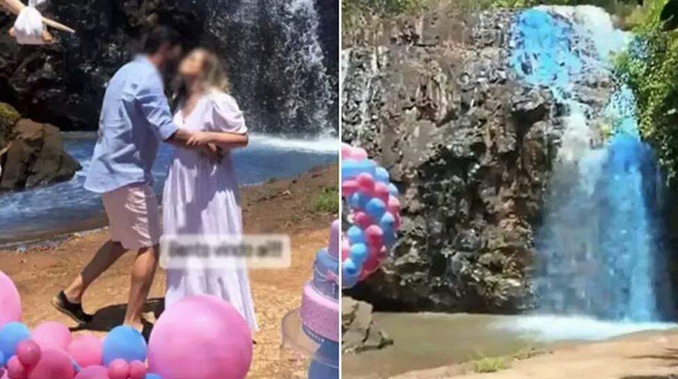 O caso viralizou nas redes sociais quando um casal escolheu a cachoeira para realizar o chá revelação e dizer aos amigos e familiares que estavam à espera de um menino, tingindo as águas da cascata de azul.