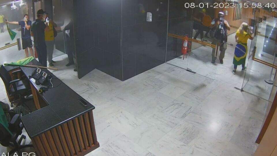 Imagens do circuito interno do Palácio do Planalto do dia 8 de janeiro reforçam a ação violenta cometida por extremistas. Além da depredação do patrimônio, as gravações mostram agentes do Gabinete de Segurança Institucional (GSI) cumprimentando invasores e até tentativa de arrombamento de caixa eletrônico.