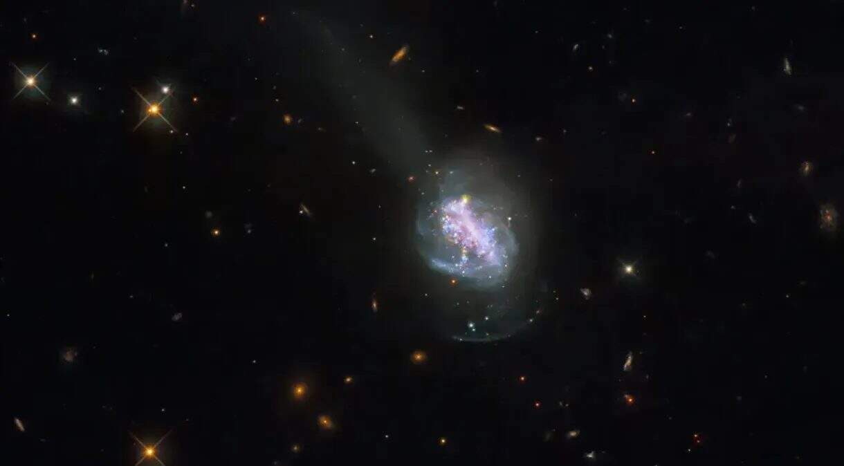 Os cientistas acreditam que, em uma fusão de galáxias, a menor das duas galáxias em interação é interrompida pela galáxia maior, perdendo a maior parte de seu material.