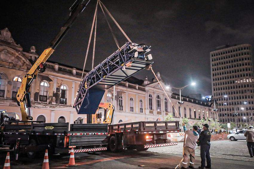 As novas escadas rolantes, que fazem parte das obras de revitalização do Mercado Público, chegaram na noite de sexta-feira (17) e serão instaladas nos próximos dias.
