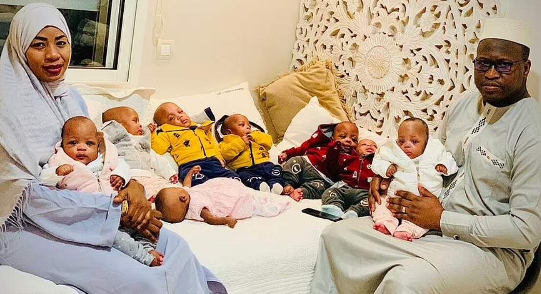 A mãe, Halima Cissé, 25 anos, e o pai Kader, 35, pensavam que teriam “apenas” sétuplos (sete bebês). Cissé disse que não acreditou quando viu nove bebês saindo de dentro dela. “Parecia um fluxo interminável de bebês saindo de dentro de mim”, afirmou.