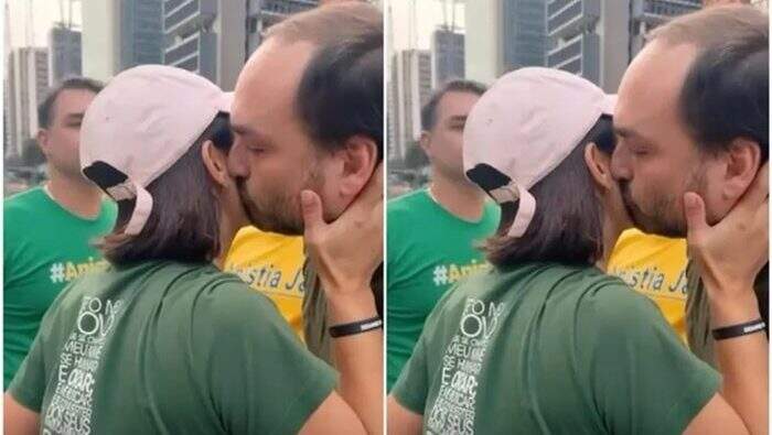 O ato pró-anistia na Avenida Paulista contou com um momento de reaproximação na família Bolsonaro. Assumidamente distante de Carlos Bolsonaro, como a própria Michelle Bolsonaro definiu, devido a “um problema lá atrás”, a ex-primeira-dama ganhou um carinhoso beijo na bochecha do filho 02 do ex-presidente ao ser cumprimentada na manifestação pró-anistia.