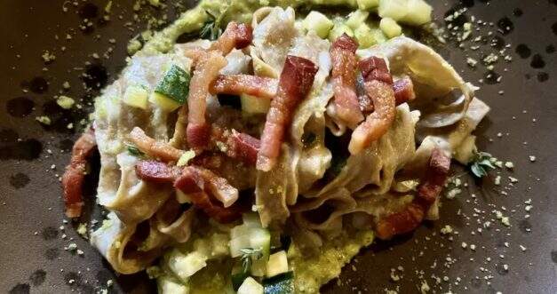 Em um restaurante perto de Turim, o chef Simone Loddo adaptou sua receita de massa fresca, que remonta a quase 1.000 anos – a massa agora é 15% de pó de grilo.