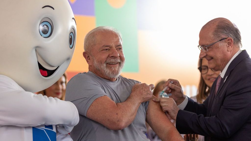 As imagens foram gravadas em fevereiro de 2023 durante o lançamento do “Movimento Nacional pela Vacinação”. Lula recebeu em um ato simbólico uma dose de reforço do imunizante bivalente contra a covid-19, aplicada por Alckmin, que é médico anestesista.