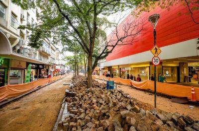 Na quinta-feira (06), está previsto o teste no piso colocado no passeio da rua Otávio Rocha. Além disso, nos canteiros entre os trechos 1 e 2, será feita a execução de esgoto para as bancas e a limpeza, remoção e preparação da área.