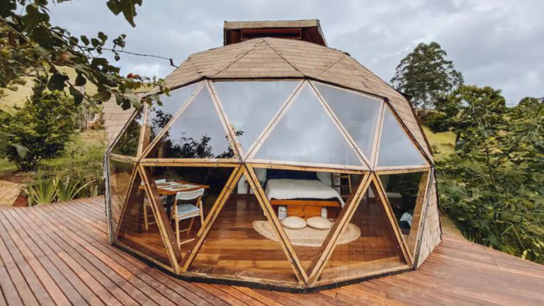 Essa estrutura arquitetônica foi transformada em acomodação no meio da Serra da Mantiqueira, em Monteiro Lobato, a 140 km da capital de São Paulo. Com 38 m², o local é todo feito em madeira ecologicamente tratada e conta com uma suíte com mezanino e uma cozinha equipada. A maior atração do “chalé” é, sem dúvidas, o painel de vidro que permite aos hóspedes contemplarem a paisagem. O Domo foi projetado ao redor da cama, priorizando a experiência de sono e descanso dos hóspedes.