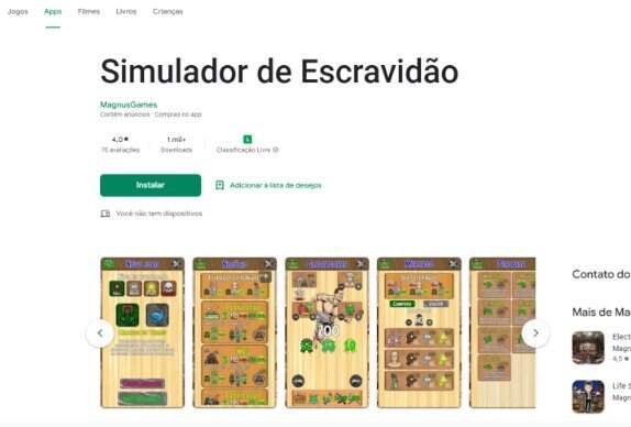 A produtora responsável, Magnus Games, afirmava no aplicativo que o usuário era capaz de “trocar, comprar e vender escravos”.