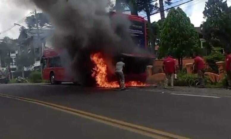 Um ônibus de turismo que realiza passeios em Canela e Gramado, na Serra Gaúcha, foi consumido por um incêndio na manhã deste sábado (28). O incidente ocorreu na Estrada do Caracol, próximo à rótula com a RS-235.