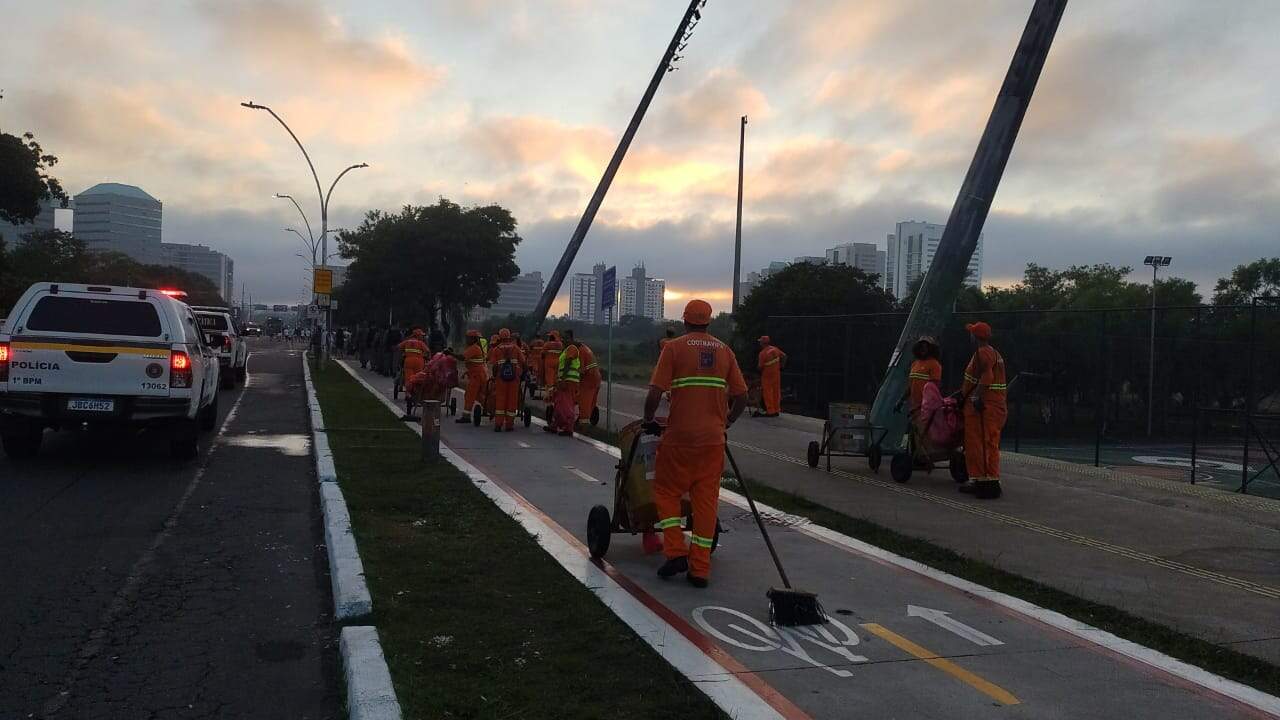 Os trabalhos iniciaram às 3h e se estenderam até por volta das 7h30min desta quarta. Cerca de 100 garis foram convocados para o serviço, auxiliados por um caminhão compactador. Os materiais recolhidos serão encaminhados ao aterro sanitário de Minas do Leão.