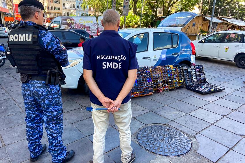 Mais de 300 óculos falsificados foram recolhidos por fiscais municipais nesta quinta-feira (5), nas imediações do Terminal Parobé, no Centro de Porto Alegre. A carga foi avaliada em cerca de R$ 10 mil. De forma rotineira, equipes de fiscalização, com apoio da Guarda Municipal, realizam vistorias e varreduras na região. A apreensão é resultado da operação Calçada Livre, coordenada pela Secretaria Municipal de Segurança.