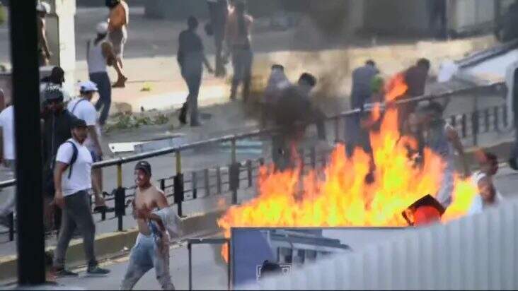 Pessoas se reúnem em Caracas neste sábado (03) em protestos contra a proclamação de Nicolás Maduro como presidente reeleito da Venezuela segundo o conselho eleitoral do país. A manifestação da oposição foi convocada pela líder do grupo, María Corina Machado, em um vídeo na quinta-feira (1º).