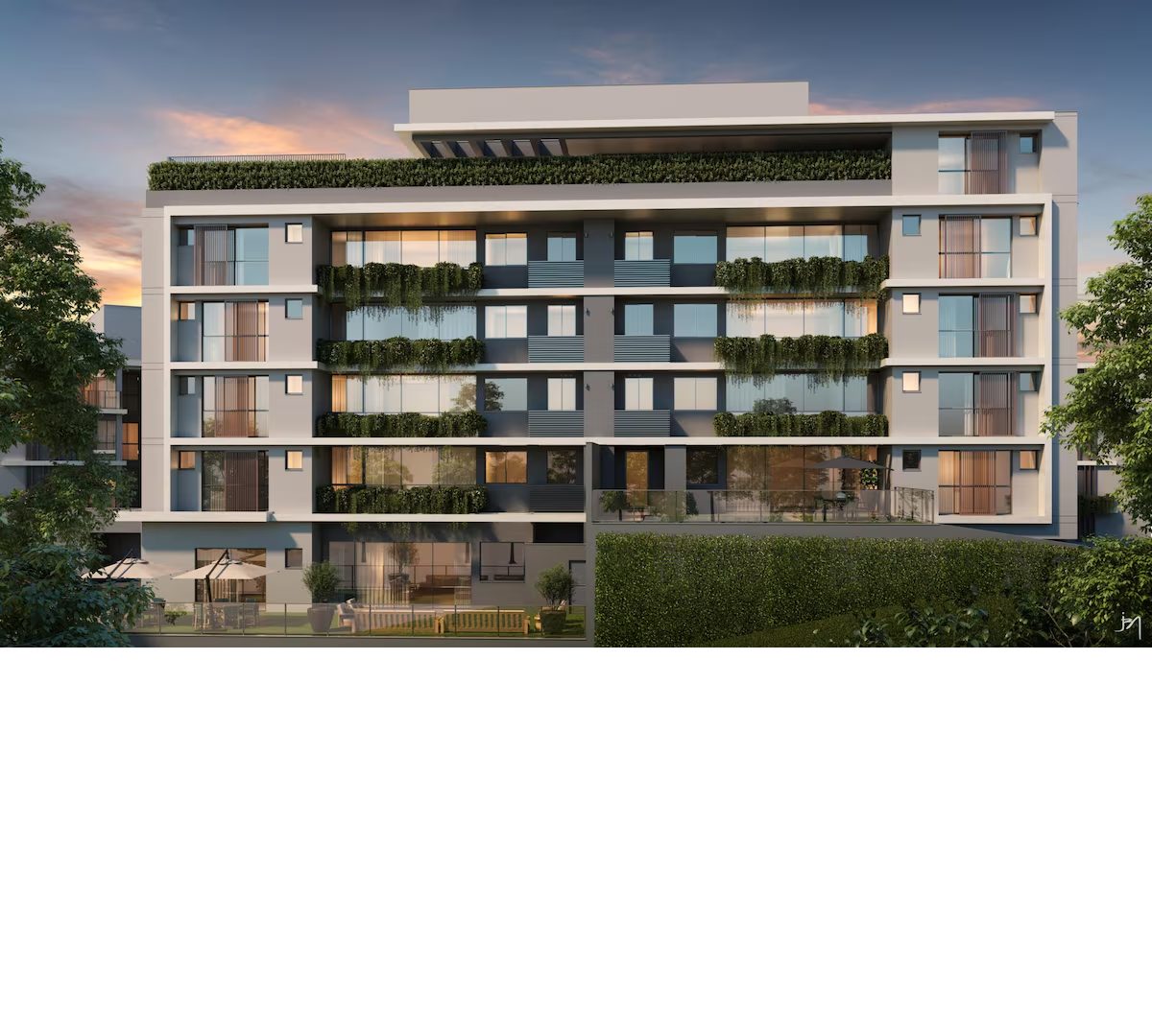 Desenvolvido pela incorporadora brasiliense Conbral, o empreendimento tem 20 unidades com metragem de 291 m² a 298 m² e quatro duplex com metragem de 388 m² a 590 m².