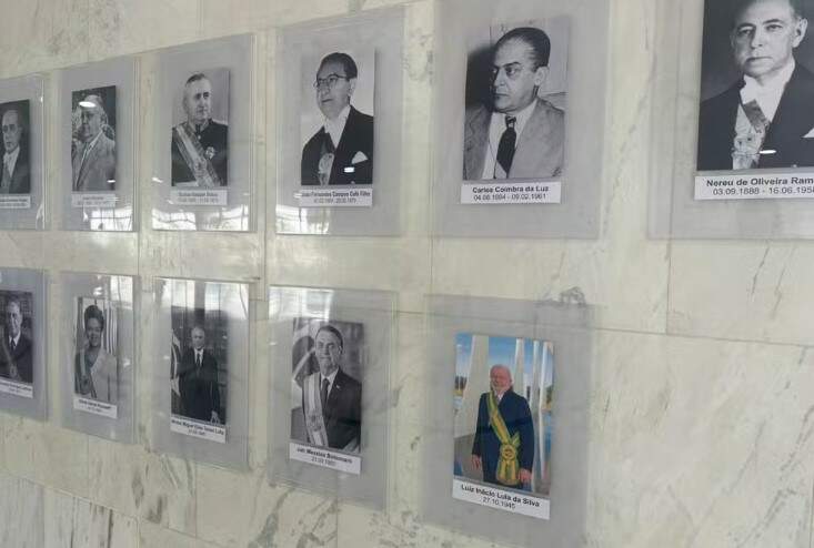 A galeria de fotos dos ex-presidentes da República fica no piso térreo da sede do Executivo. O espaço havia sido destruído durante as manifestações de 8 de janeiro de 2023. Os invasores jogaram as estruturas de vidro que revestiam as fotos no chão e rasgaram as imagens.