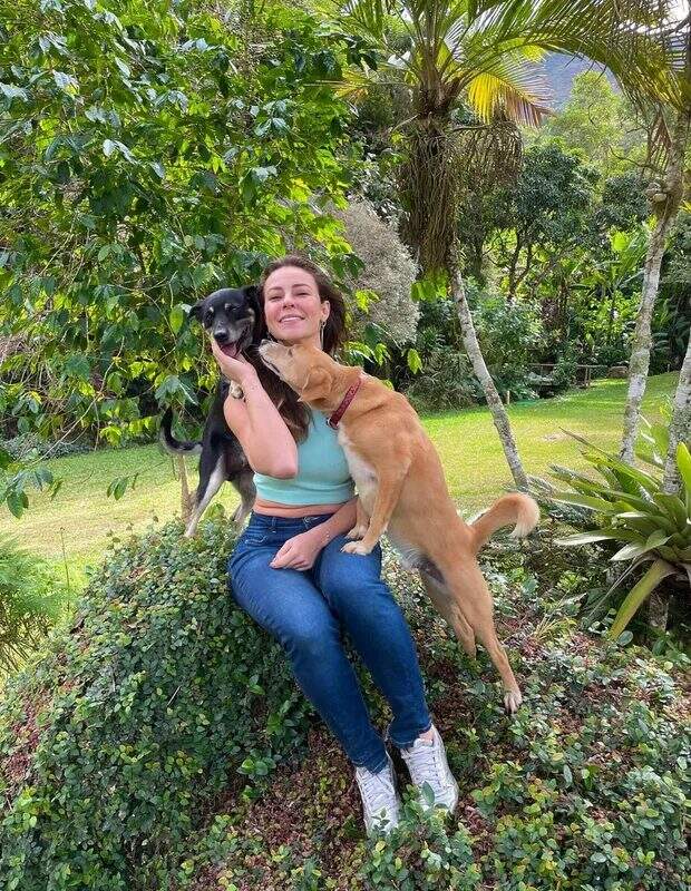 Paolla Oliveira, de 40 anos, posou ao lado de dois cachorrinhos para comemorar o Dia Mundial dos Animais. As fotos foram compartilhadas pela atriz, nesta terça-feira (4), no Instagram.