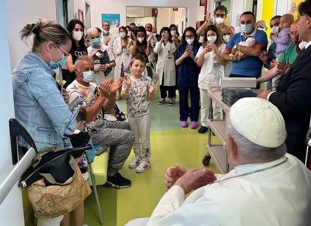 O papa Francisco visitou nesta quinta-feira (15) o Serviço de Oncologia Pediátrica e Neurocirurgia Infantil do Hospital Gemelli, em Roma, na Itália, onde está internado.