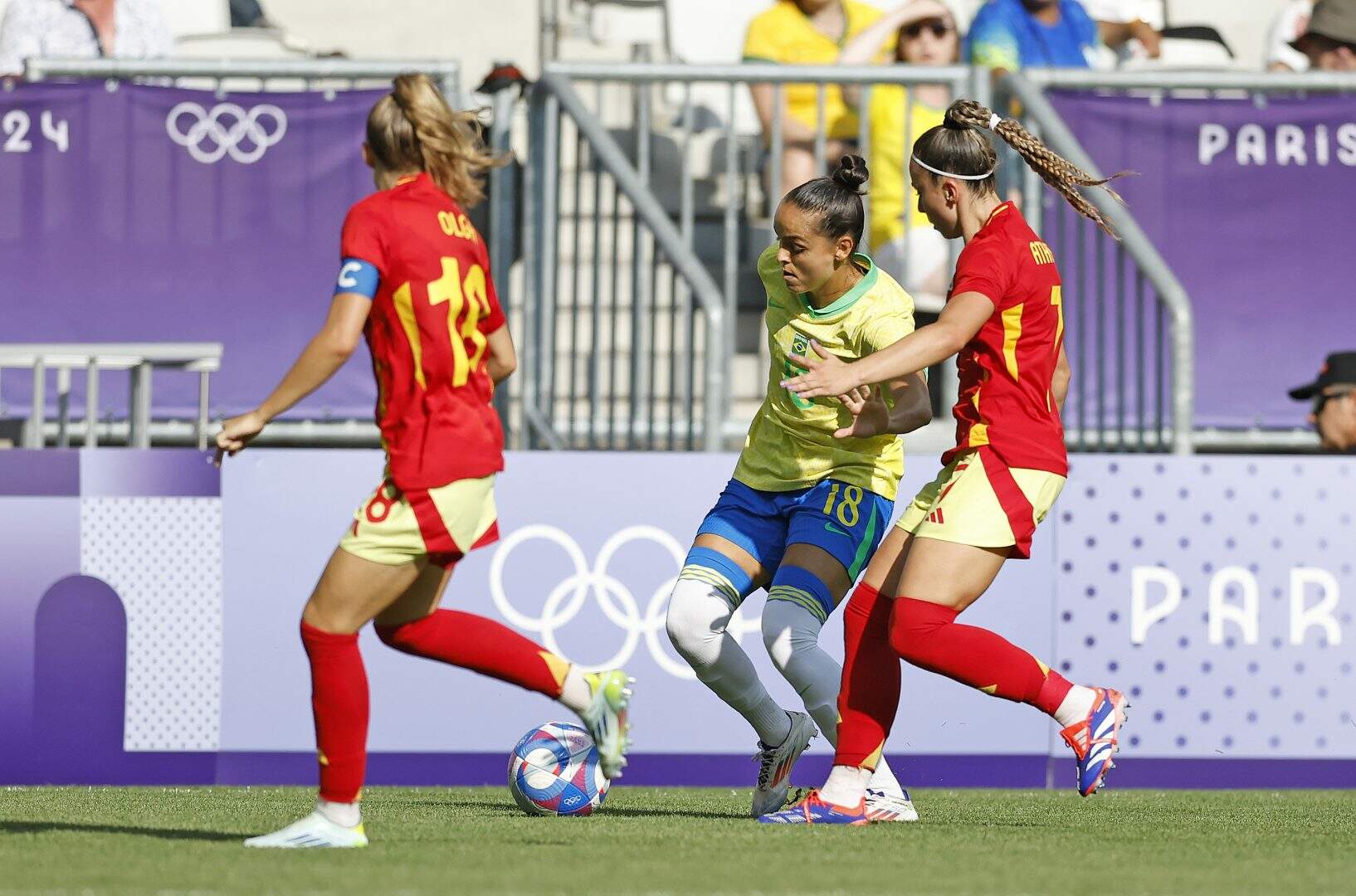 A Seleção Brasileira entrou em campo nesta quarta-feira (31) às 12h (horário de Brasília) para enfrentar a Espanha no futebol feminino na Olímpiada de Paris. Após acontecimentos relevantes no primeiro tempo da partida, alguns memes viralizaram nas redes sociais. O placar final foi 2 a 0 para a Espanha.