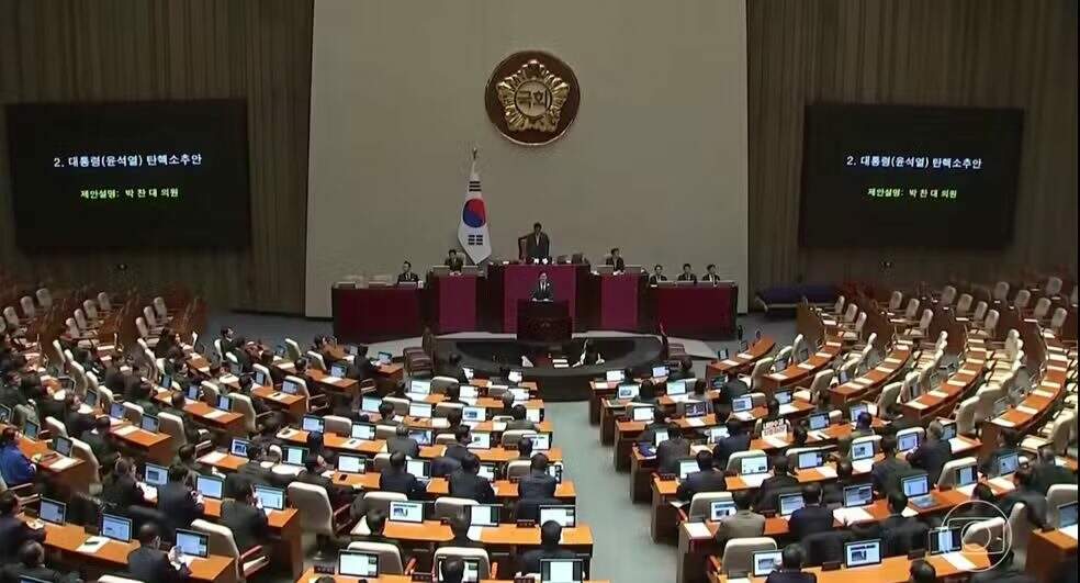 O Legislativo sul-coreano é dominado pelo Partido Democrático, que faz oposição ao presidente interino. O impeachment foi aprovado com os votos favoráveis de 192 dos 300 parlamentares. Para a medida, eram necessários 150 votos, o equivalente à metade das cadeiras do Parlamento.