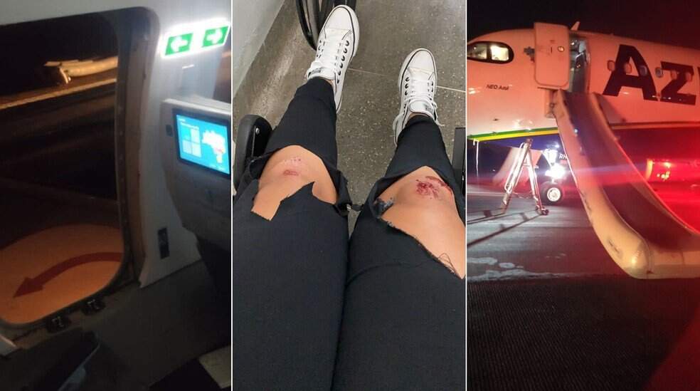 “As comissárias começaram a falar que ia explodir o avião, que era para evacuar o avião e foi aquele desespero. Ninguém conseguia abrir porta. Eu não sei quantas pessoas já tinham saído na minha frente, mas consegui sair, graças a Deus, sem nenhum ferimento. Saí pela pelo escorregador (inflável).
