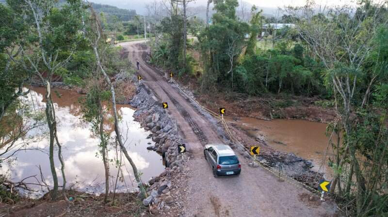 O governo do Rio Grande do Sul concluiu a construção de uma passagem emergencial na ERS-494 e liberou o tráfego de veículos entre Três Cachoeiras e Morrinhos do Sul, no Litoral Norte, na quinta-feira (29).